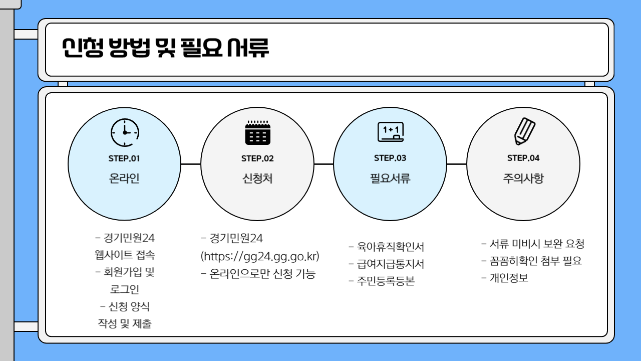 신청은 아주 간단해요. 경기민원24 웹사이트에서 온라인으로 신청 가능하고요, 필요한 서류만 준비되면 10분이면 끝납니다.