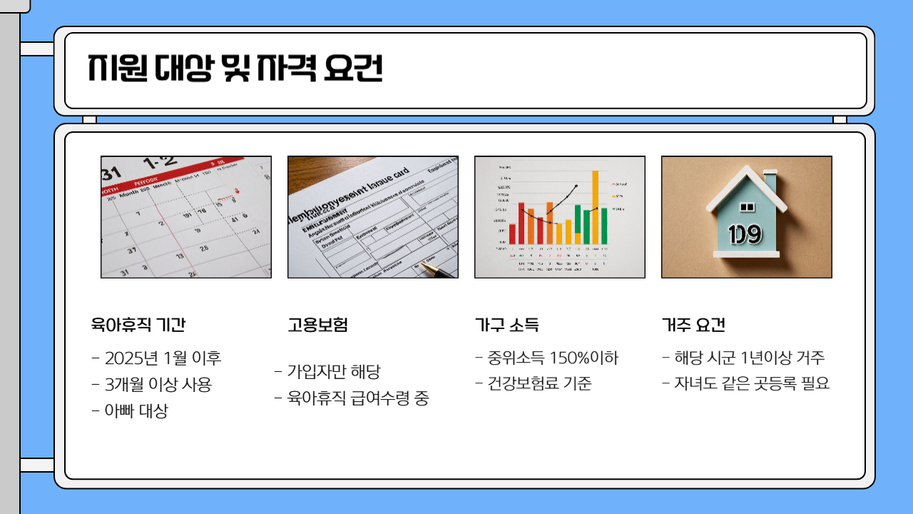 | 육아휴직 기간 | 2025년 1월 이후 3개월 이상 사용 |