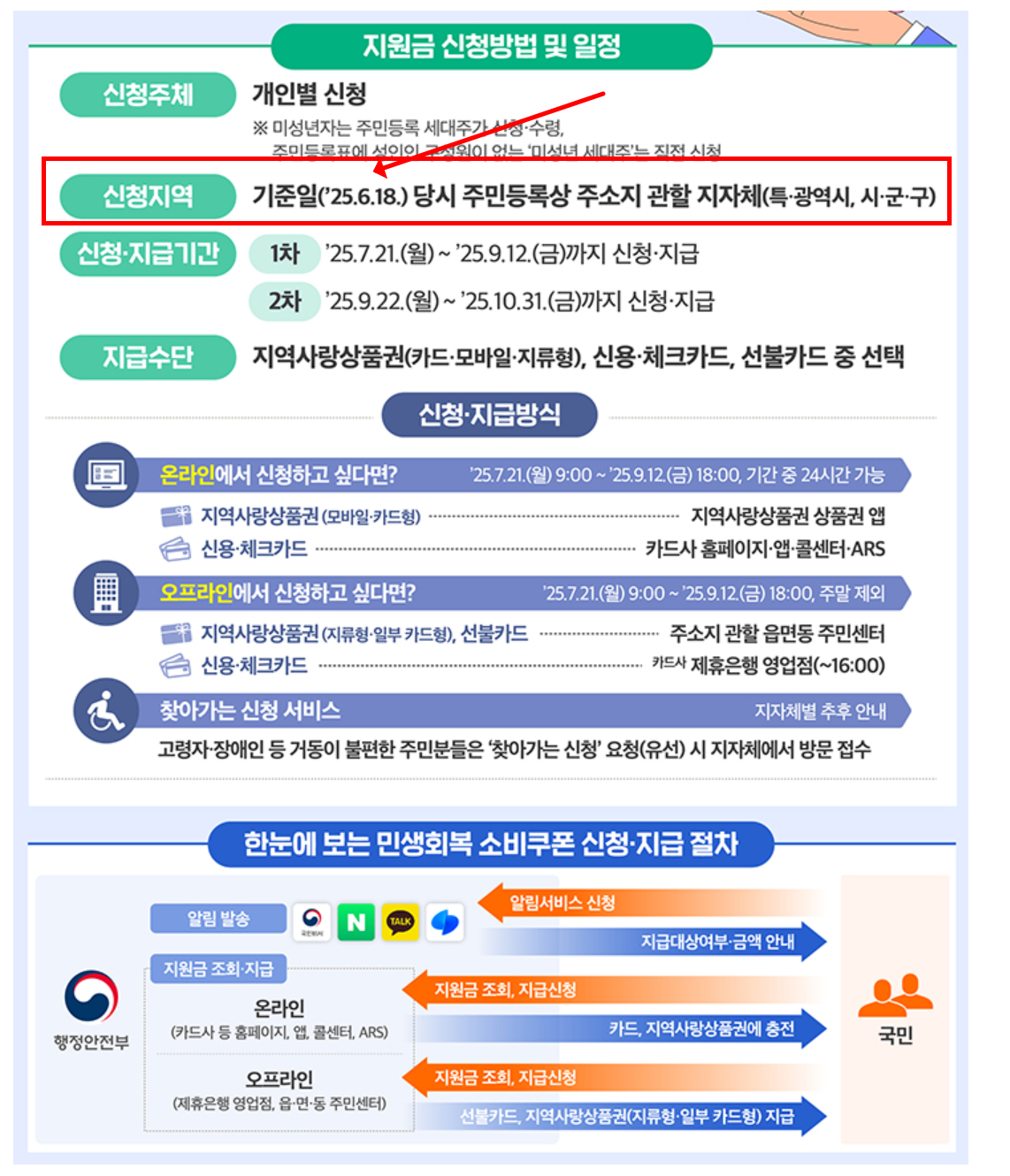 즉, 6월 25일에 이사를 했더라도, 6월 18일에 등록된 주소지가 서울이라면, 서울에서 소비쿠폰을 받아야 합니다.