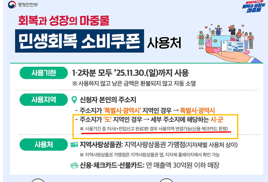 그렇다면 “민생회복 소비쿠폰은 어디서 신청해야 할까”, “전입신고 했으면 사용 지역도 바뀌는 걸까?”와 같은 궁금증이 생기실 겁니다.