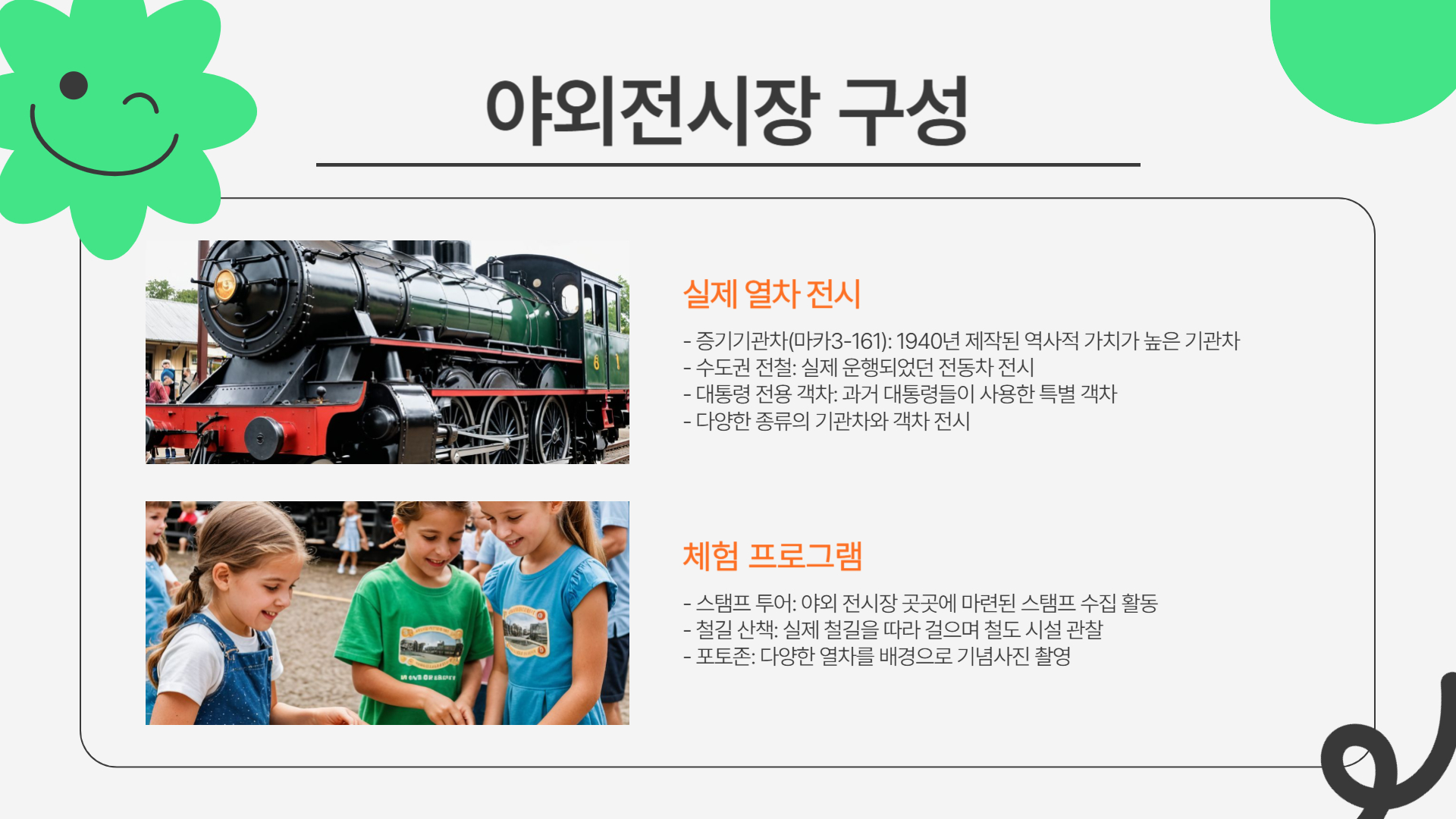 1️⃣ 실물 열차가 전시된 야외전시장