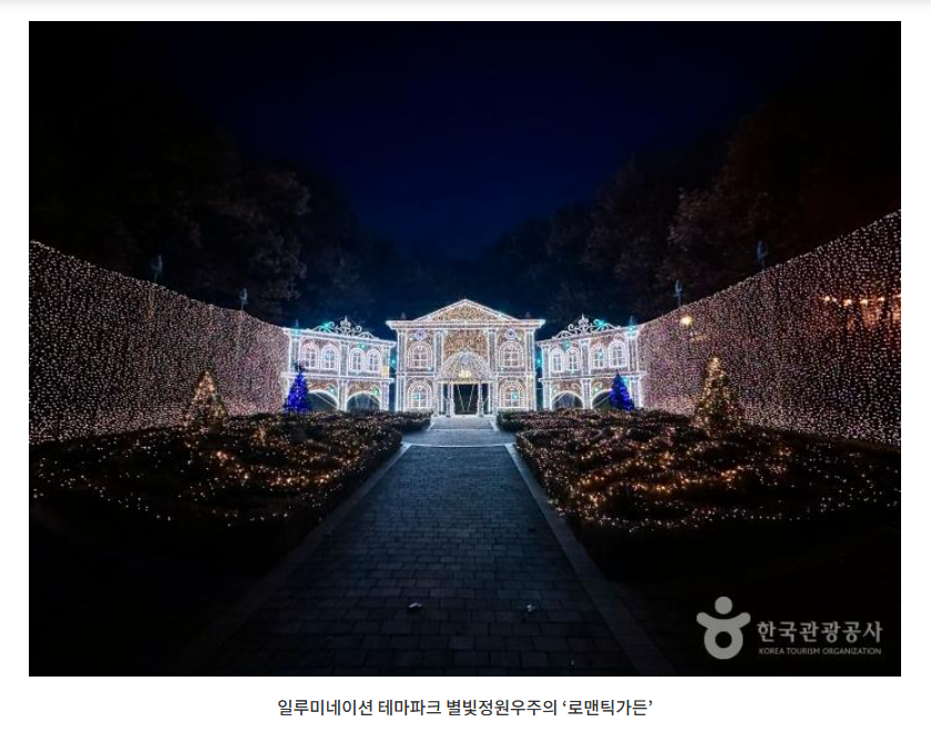 경기도 이천 나들이 코스로 인기 있는 별빛정원우주는, 덕평자연휴게소 내 위치한 테마파크형 조명 정원입니다
