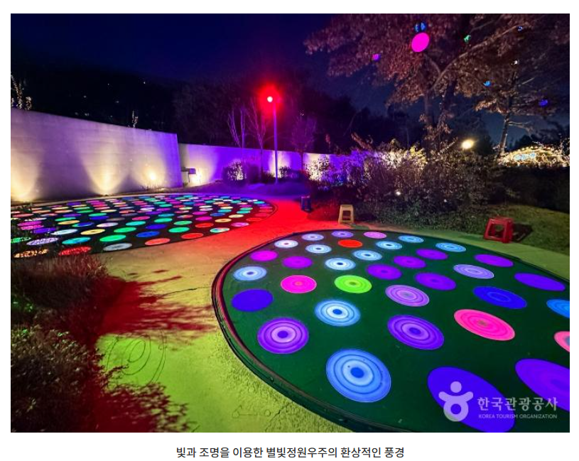 별빛정원우주는 서울 근교에서 야경과 미디어아트를 즐길 수 있는 대표적인 이천 나들이 장소로 자리잡고 있습니다.