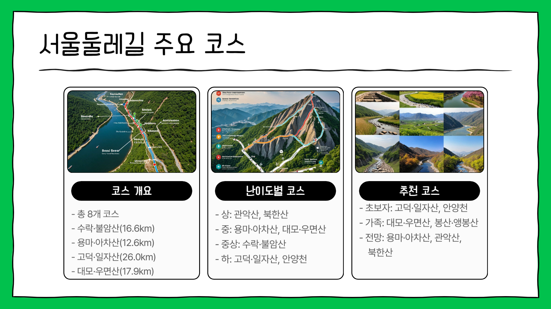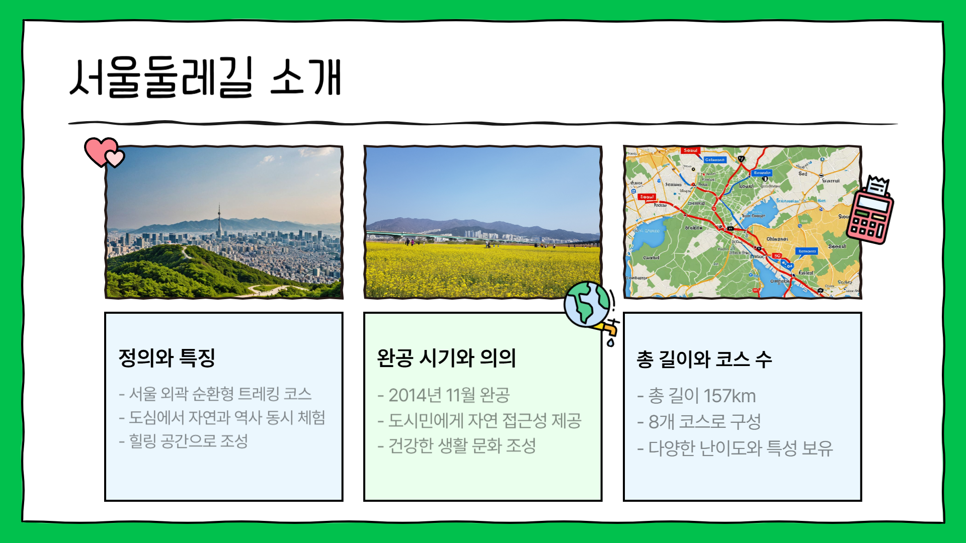서울둘레길은 도심을 벗어나 자연 속에서 특별한 휴식과 추억을 만들어줄 완벽한 힐링 여행지입니다. 각자의 취향과 체력에 맞춰 원하는 코스를 골라 도보여행의 매력을 만끽해 보세요! 🌲✨