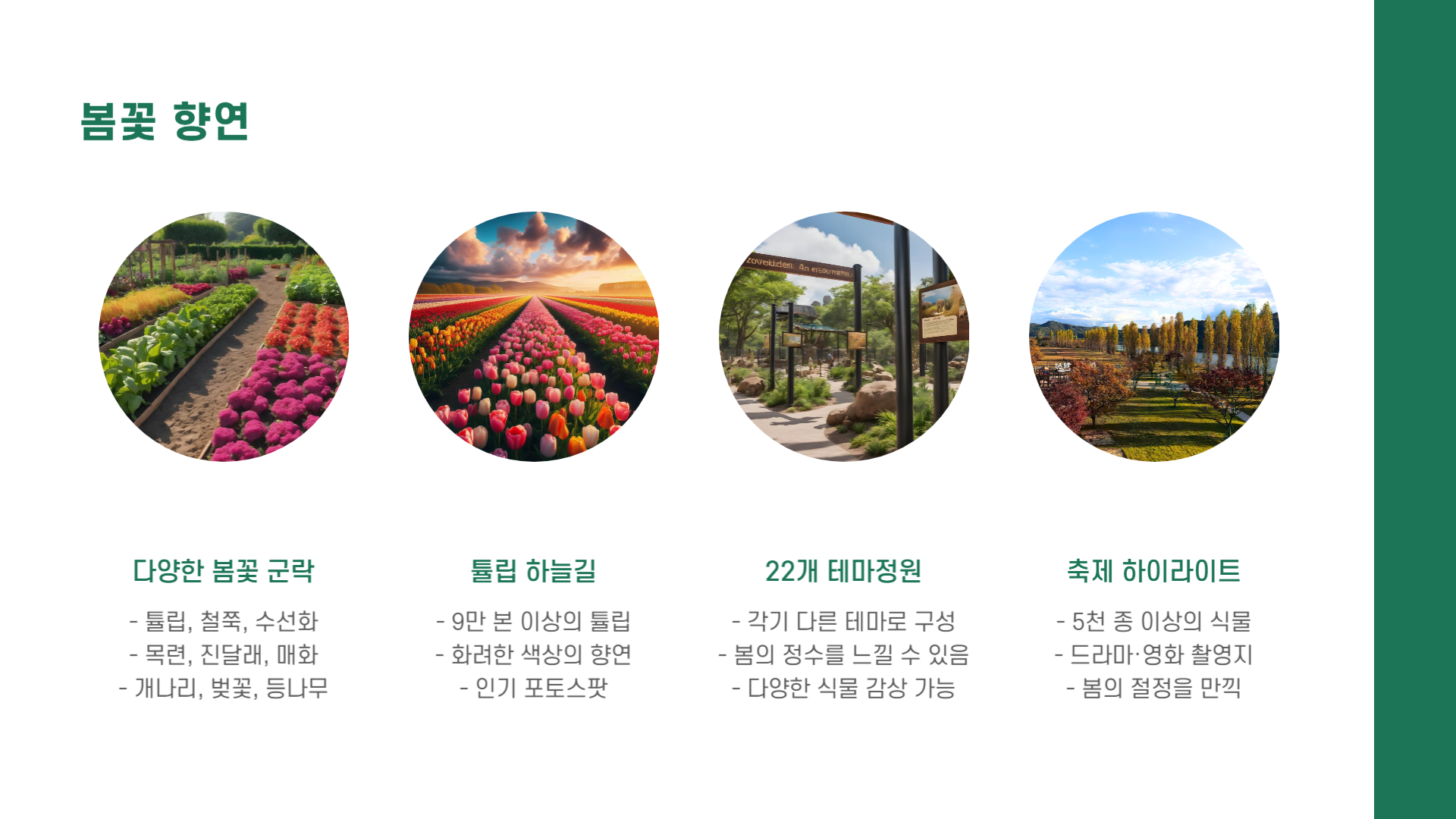 여러분, 봄은 한정판이에요. 잠깐 스쳐가는 이 아름다운 계절을 그냥 흘려보내긴 너무 아쉽잖아요. 아침고요수목원 봄꽃페스타는 단순한 꽃구경 그 이상이에요. 직접 걷고, 보고, 느끼고, 사진에 담으며 하루를 오롯이 봄으로 채울 수 있는 완벽한 경험이죠. 가족과, 연인과, 또는 혼자라도 좋습니다. 이번 주말엔 도심을 벗어나 이 환상적인 정원 속으로 떠나보세요.
