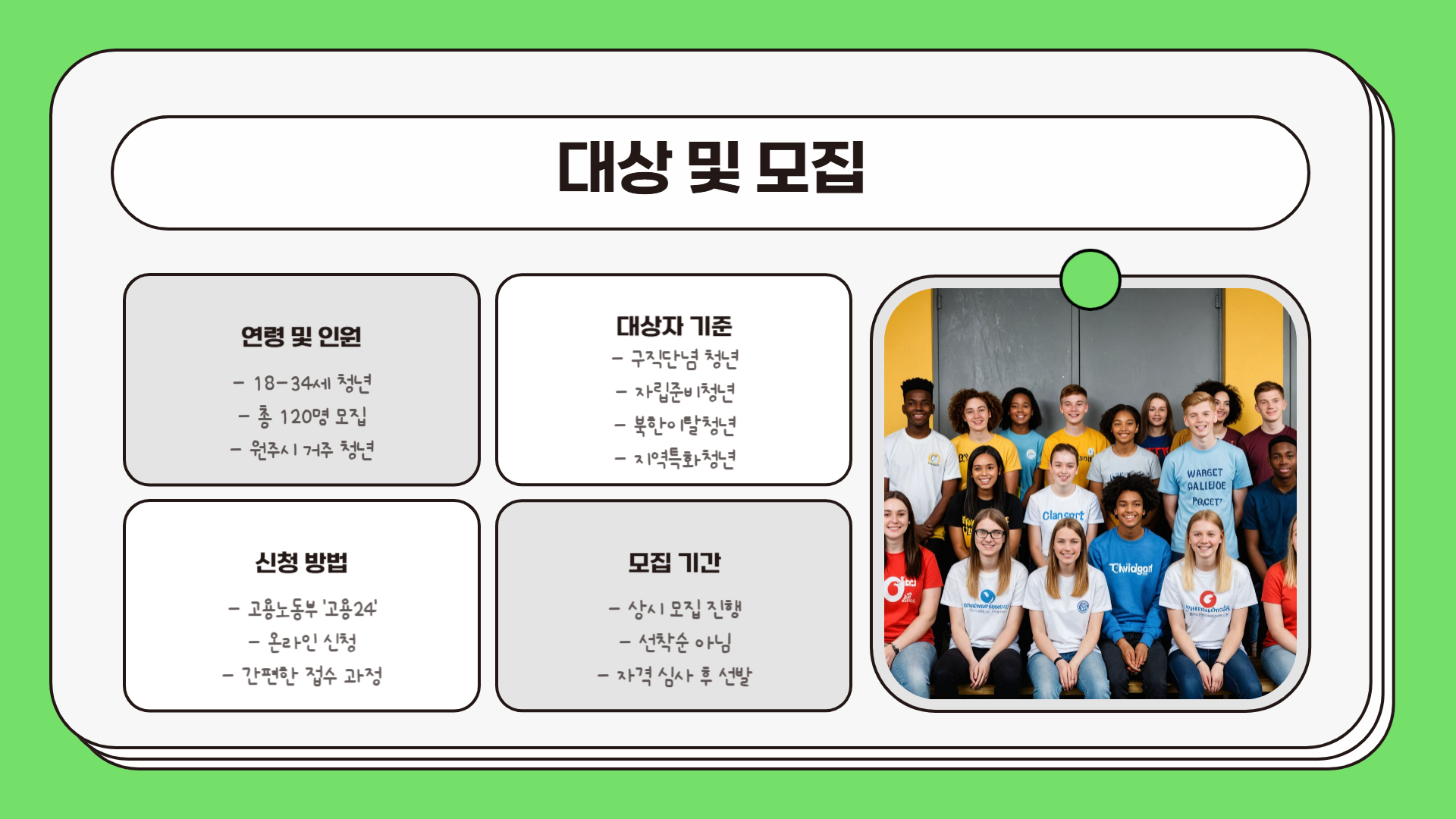 | 대상 청년 | 18~34세 구직단념 청년 120명을 모집합니다 |
