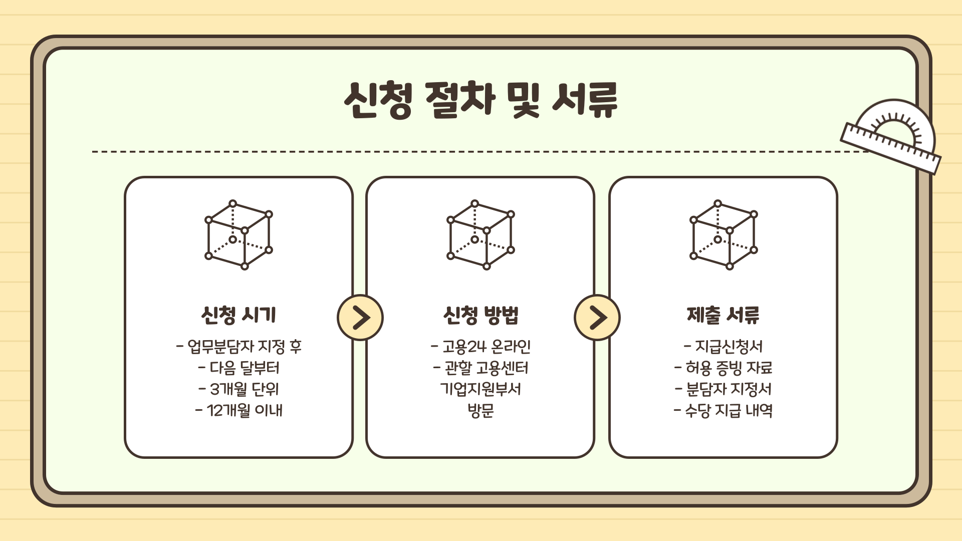 - 신청 시기: 업무분담자 지정 후, 다음 달부터 3개월 단위로 신청