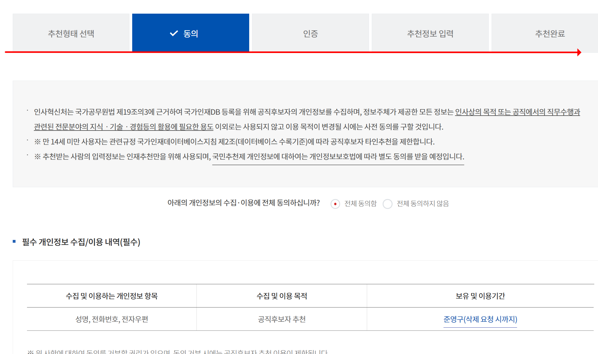 • 인사혁신처 국민추천제 홈페이지에서 온라인 추천서 작성