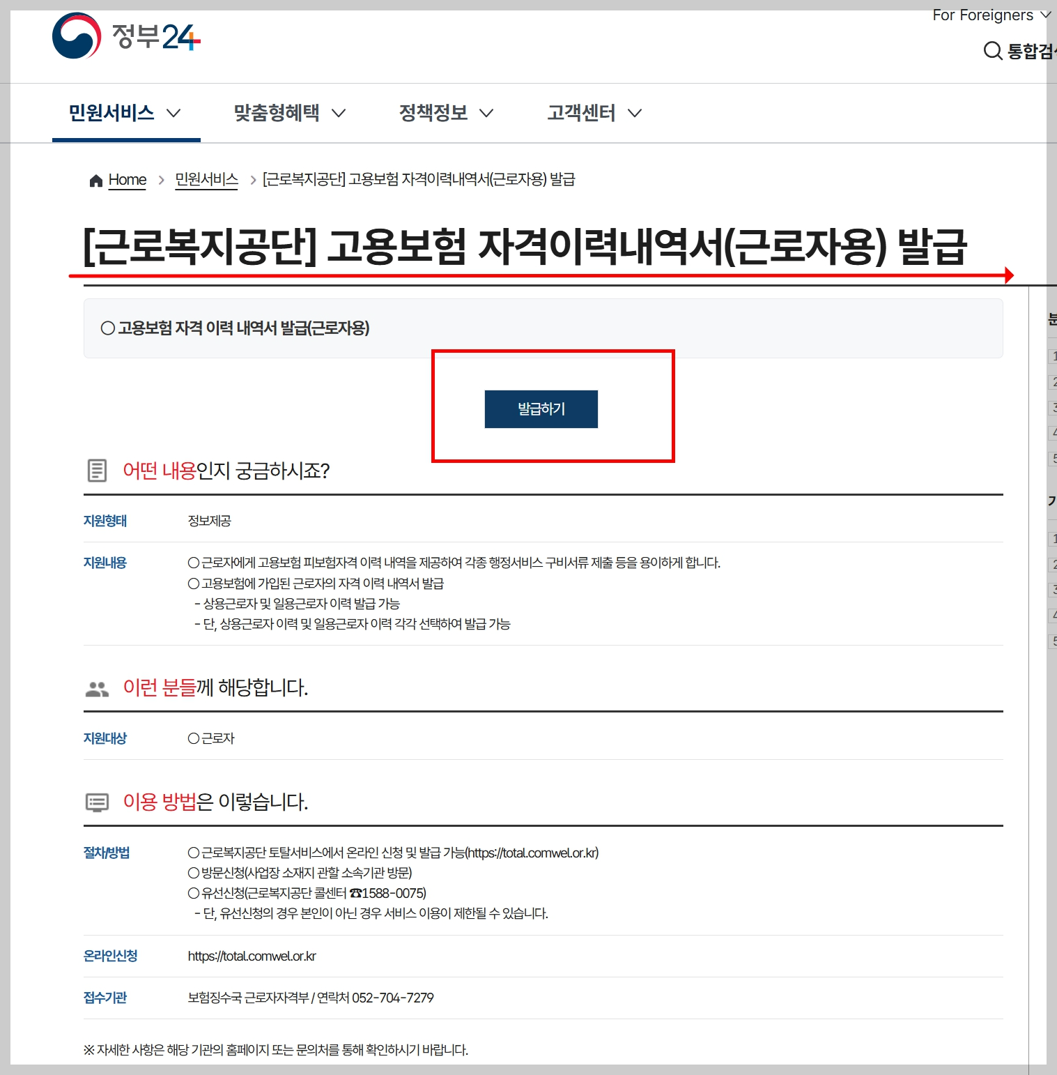 3. 정부24에서 고용보험 가입이력 조회 3단계