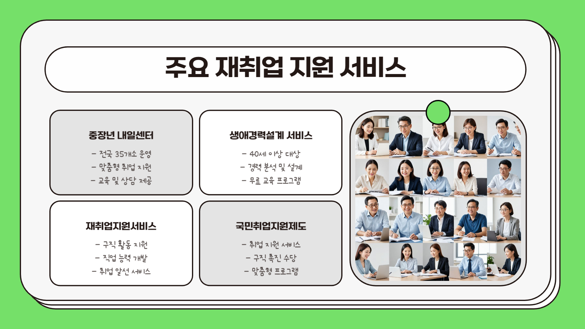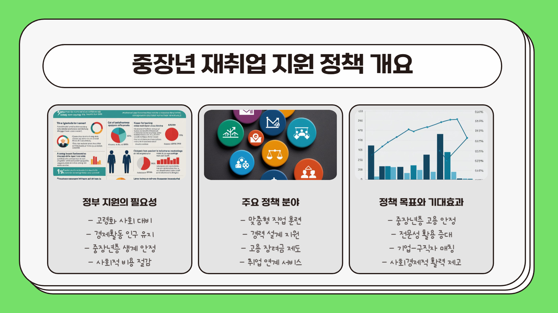 | 중장년 재취업 | 정부의 정책 지원으로 새로운 도약 가능 |
