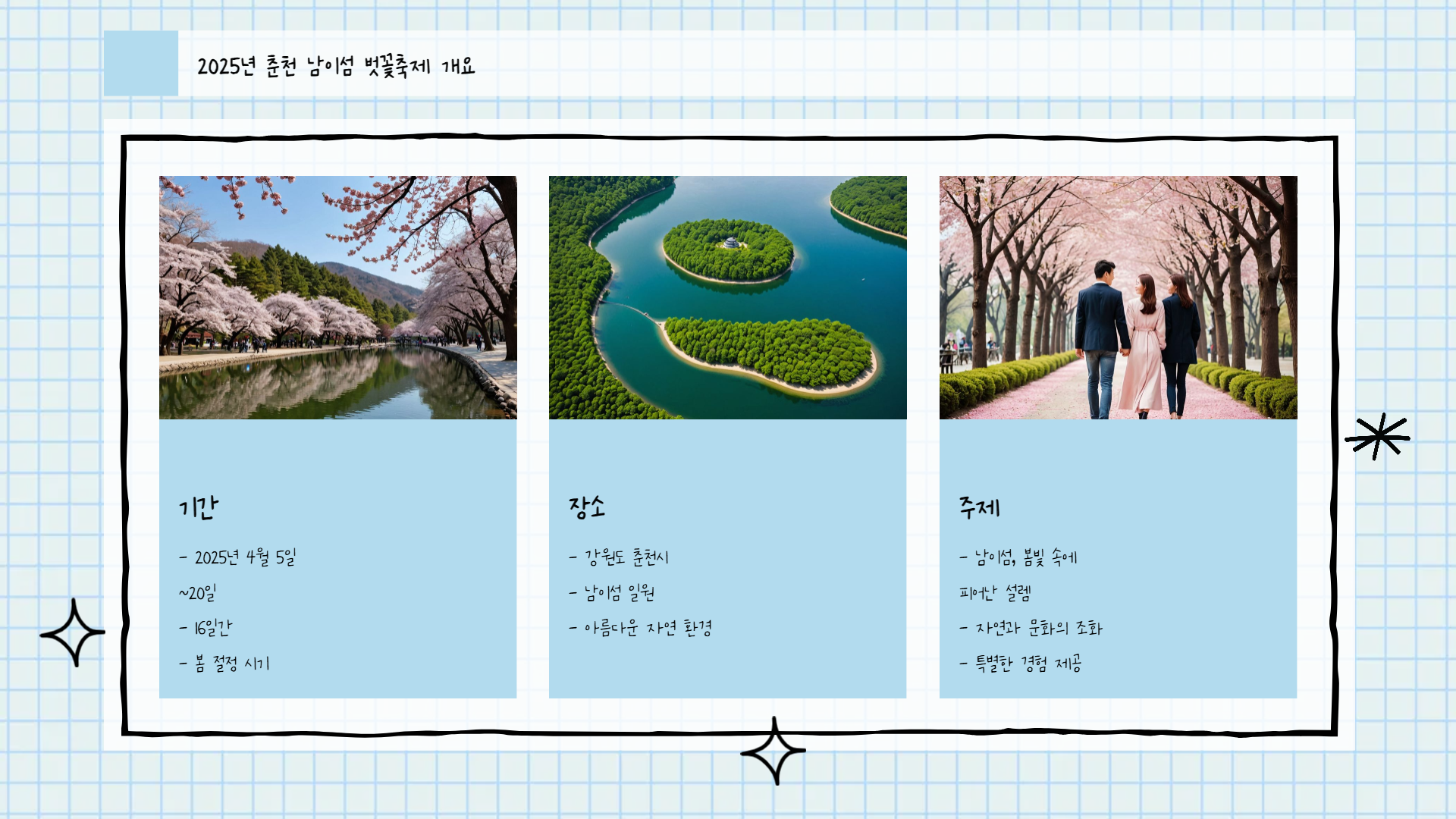 | 벗꽃 포토존 | ‘남이섬네컷’, ‘달오름 프레임’ 등에서 인생샷 찰칵! |