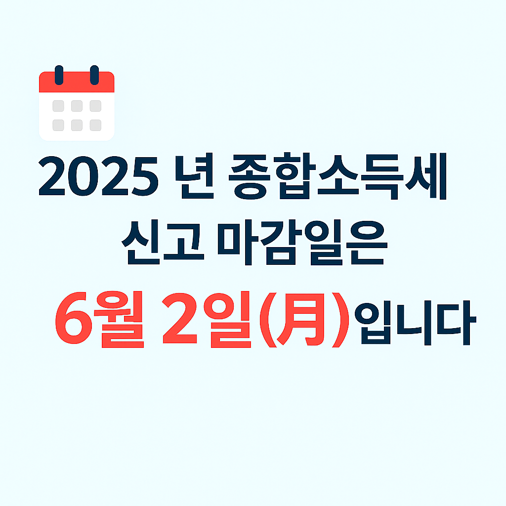 ⏰ 2025년 종합소득세 신고 마감일은 6월 2일(월)입니다. 원래 마감일은 5월 31일(토)이지만, 주말이 포함되어 그 다음 평일인 6월 2일까지 자동 연장되었으니 꼭 참고하세요.