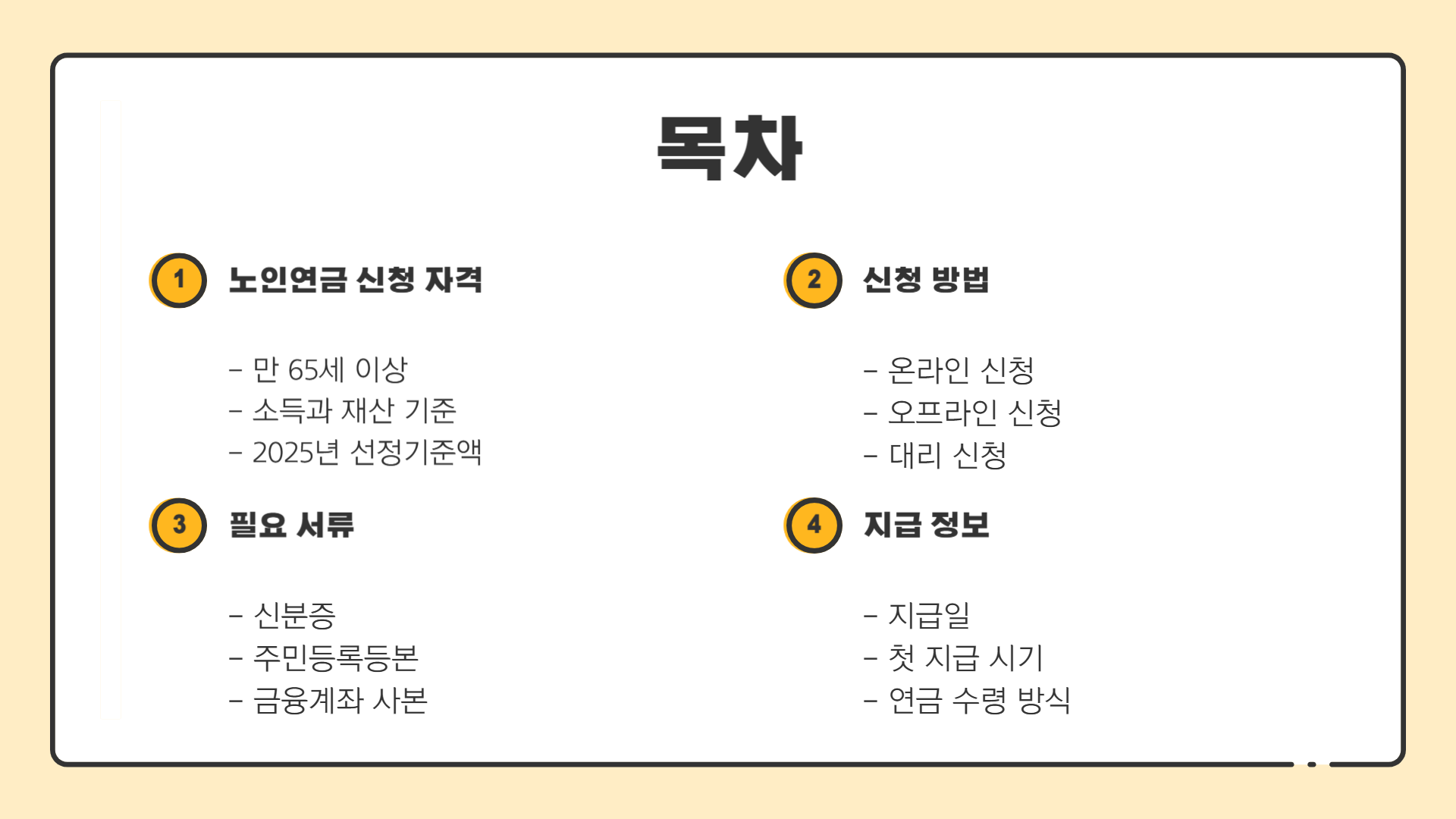 저 역시 부모님의 연금 신청을 도와드리면서 여러 시행착오를 겪었는데요. 2025년 노인연금 신청 방법과 수령 절차를 한눈에 보기 쉽게 정리해 드리겠습니다.