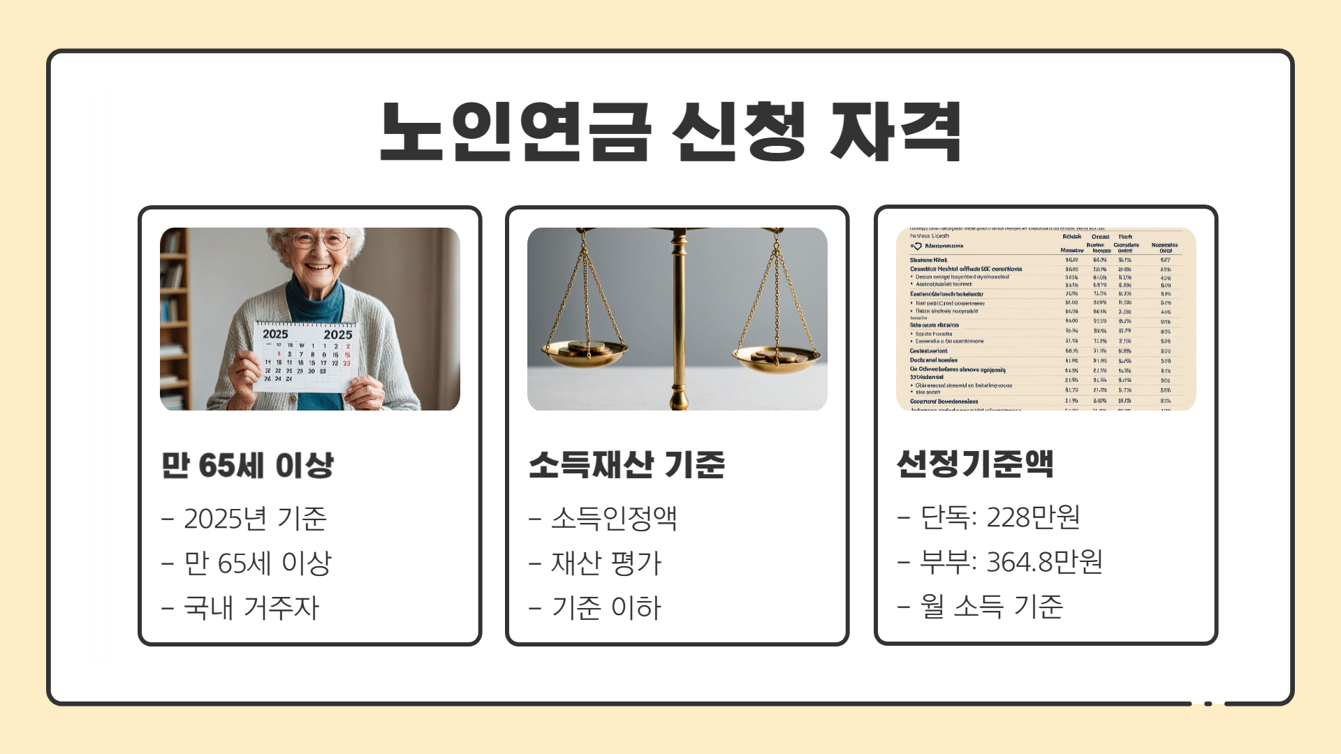 | 노인연금 신청 나이 | 만 65세 이상부터 신청 가능 |