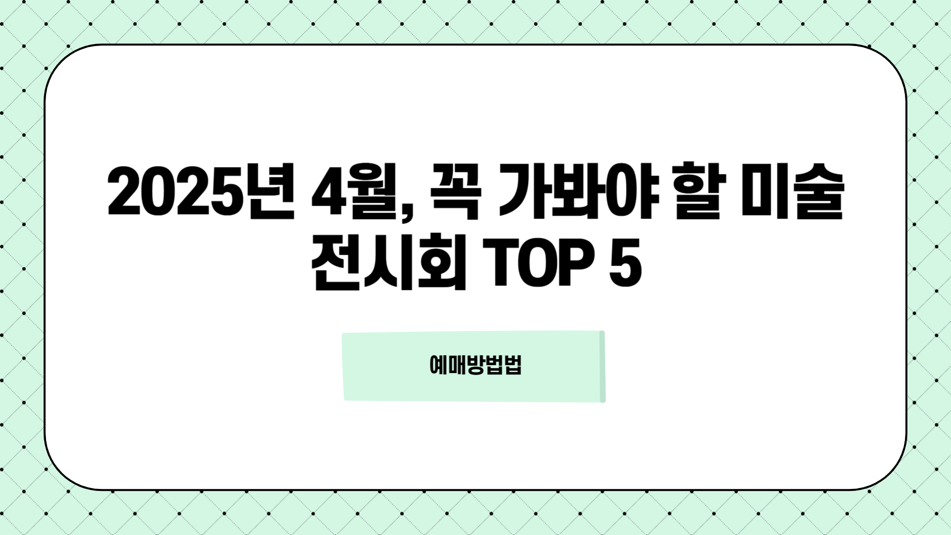 2025년 4월, 꼭 가봐야 할 미술 전시회 추천 TOP 5 (+예매 방법 포함)