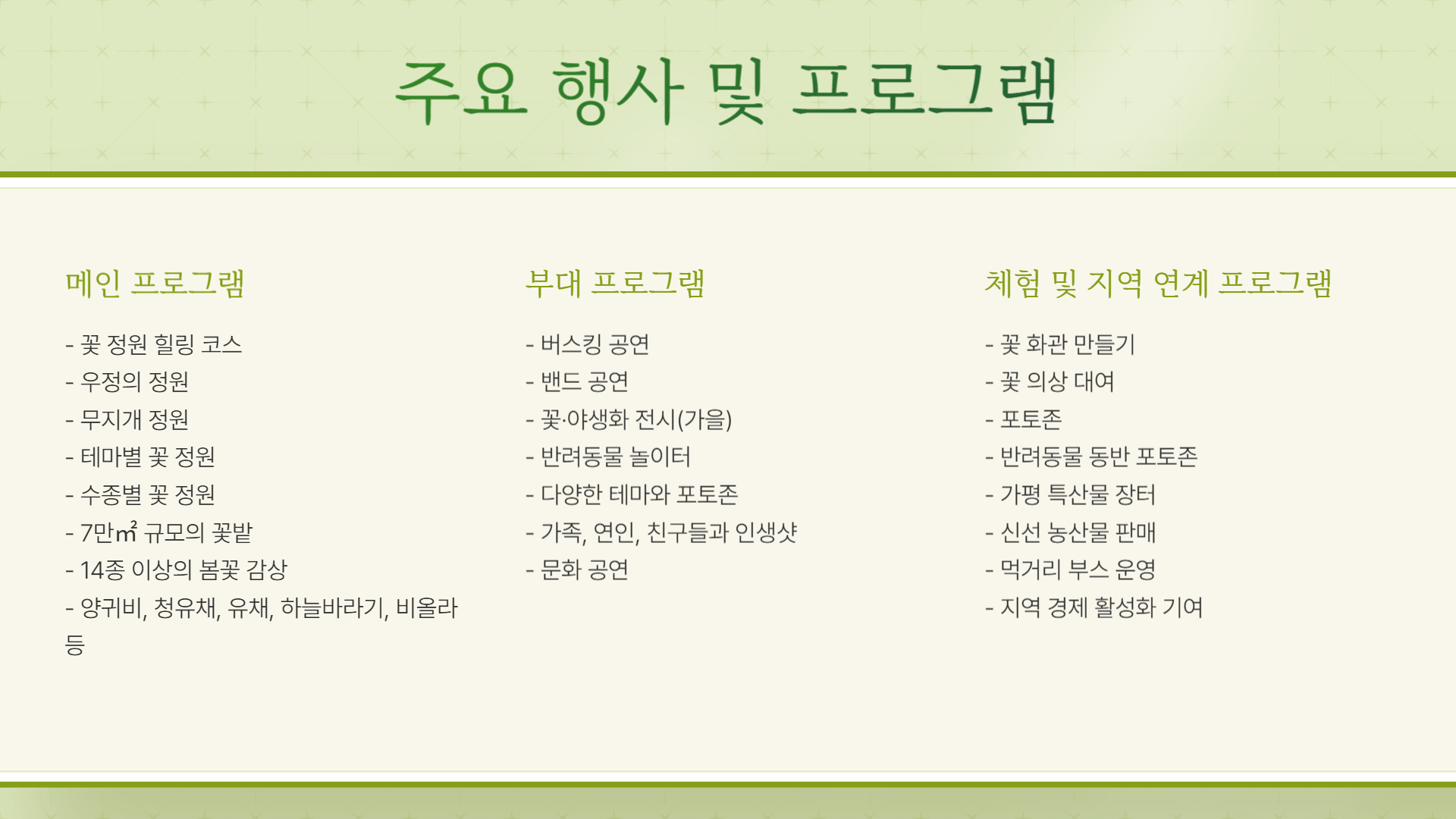 가평 자라섬 꽃축제 주요 프로그램 구성