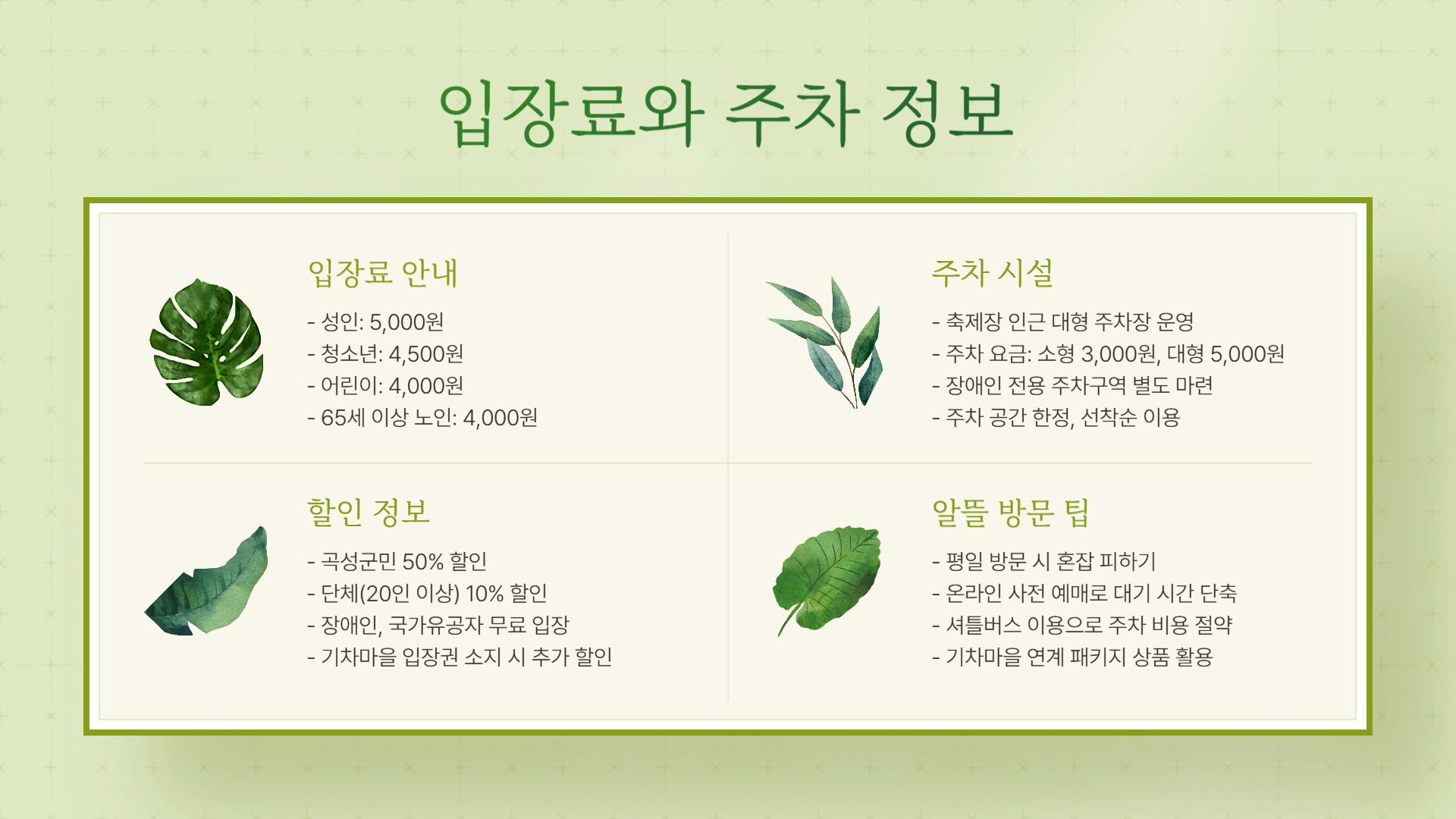 💸 입장료 & 주차장 정보 - 걱정 없는 방문 준비