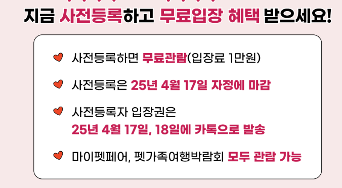 • 마이펫페어에 갈 계획이라면, 사전등록은 선택이 아니라 필수예요! 그 이유는 바로 아래와 같습니다.