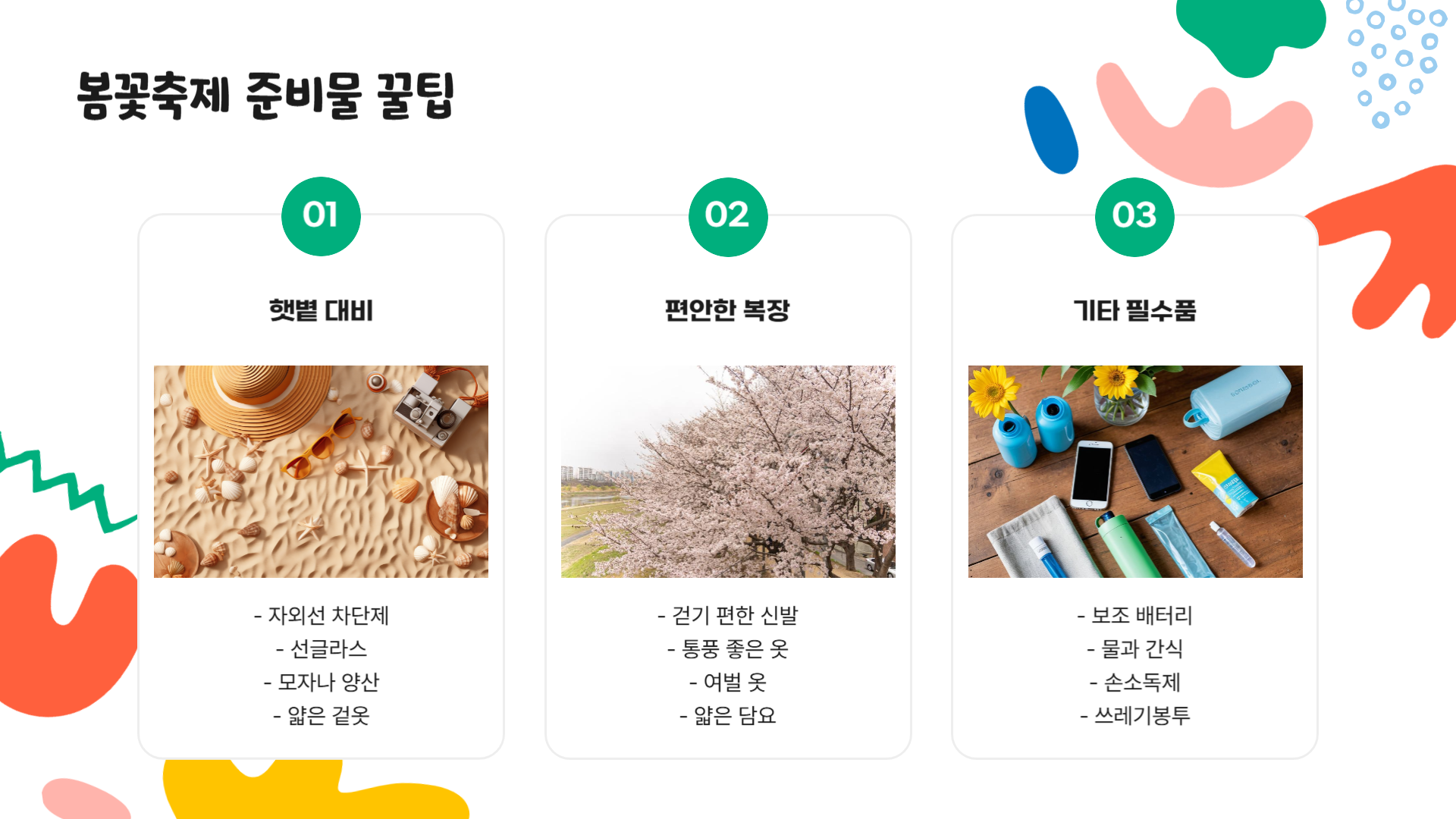 봄꽃축제 준비물만 잘 챙겨도 정말 차이가 큽니다.
