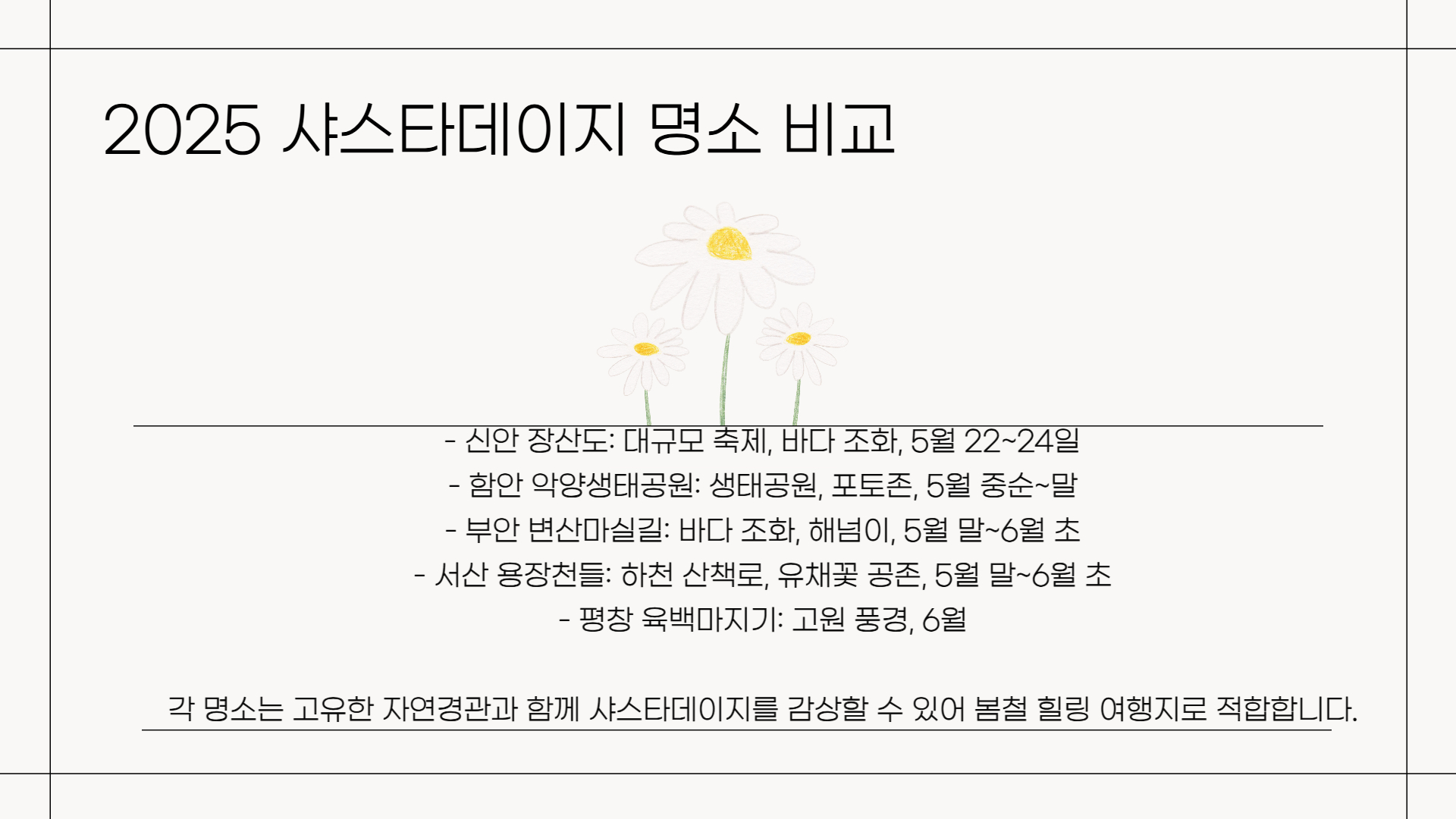 2025 샤스타데이지 명소 비교표