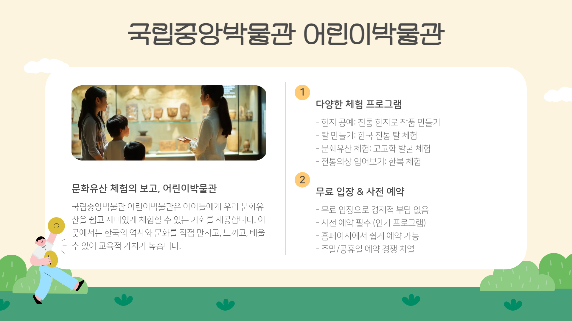 - 포인트: 한지 공예, 탈 만들기, 문화유산 체험