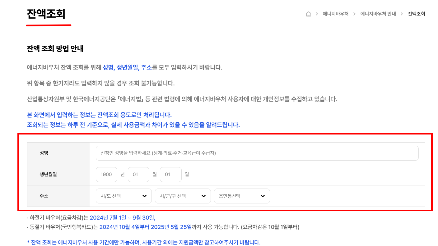 에너지바우처 잔액은 아래 방법으로 간편하게 확인할 수 있습니다.