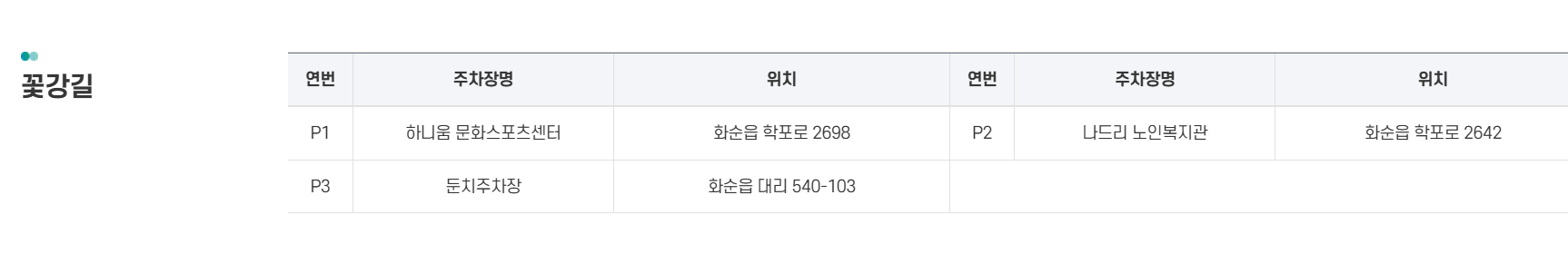 | 꽃강길 | 전남 화순군 화순읍 대리 481 |