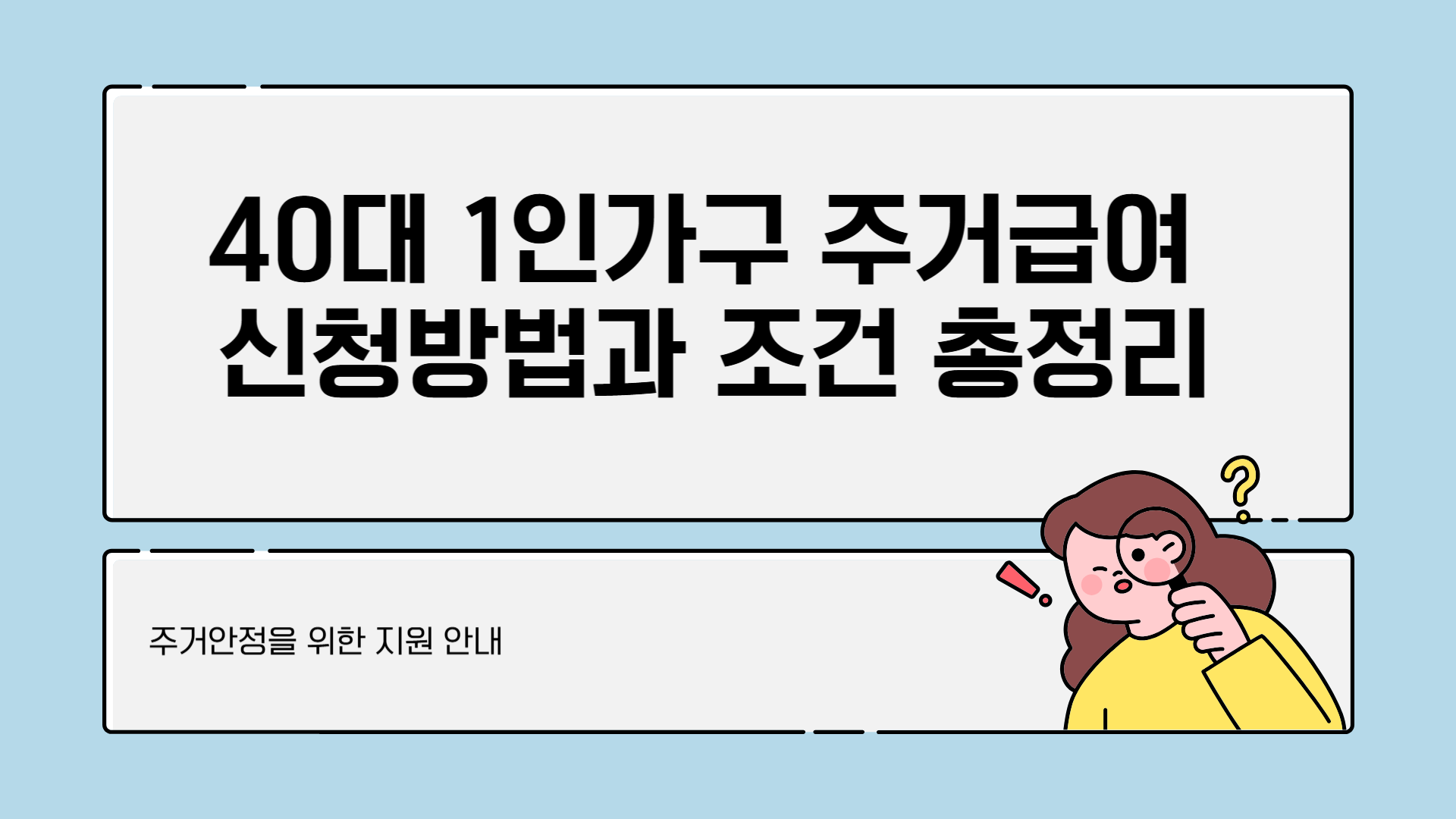 최근 몇 년 사이 1인 가구가 급격히 증가하면서, 정부의 주거급여 지원 제도에 대한 관심도 함께 높아지고 있습니다. 특히 40대 1인 가구의 경우, 경제활동과 동시에 주거비 부담을 덜 수 있는 현실적인 지원책이 절실한데요. 이를 위해선 단순히 신청만 한다고 끝나는 것이 아니라, 소득 기준부터 서류 제출 절차, 심사 방식까지 명확히 알고 접근하는 것이 중요합니다. 이번 포스팅에서는 2025년 기준으로 주거급여 신청 방법과 자격 요건, 심사 절차까지 전 과정을 단계별로 정리해드릴게요. 글을 끝까지 보신다면 복잡해 보이는 절차도 훨씬 간단하게 느껴지실 거예요. 꼼꼼히 준비하셔서 꼭 혜택 받으시길 바랍니다.