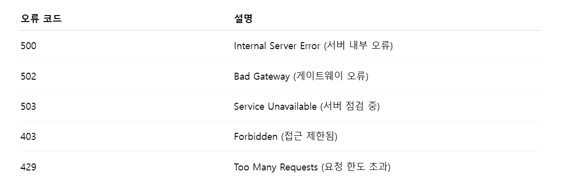 - “Failed to get response”/ 서버에서 정상적으로 응답을 받지못했을때 나타나는 오류